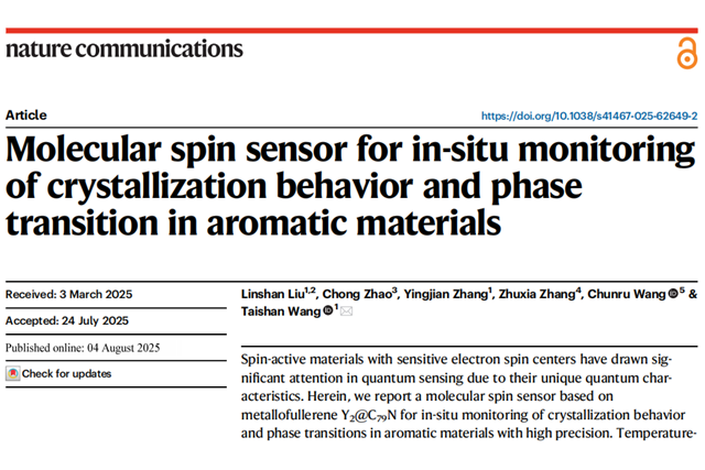 近日,北京理工大学王太山课题组报道了利用基于金属富勒烯的分子自旋传感器... -