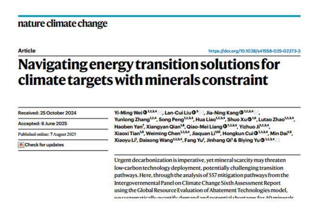 北京理工大学碳中和系统工程北京实验室魏一鸣教授团队在国际上首次提出兼顾... -
