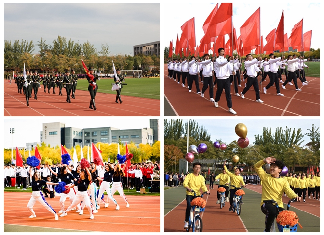 伴着雄壮的进行曲,国旗队、红旗队、各书院和国际教育学院方队依次入场。嘹亮的口号、铿锵的步伐,踏出他们的坚定与自信;动感的现代舞、热情的啦啦操,洋溢着他们的青春与朝气;融汇书院特色文化的方阵入场,展现了新时代北理人爱国、奋斗、追梦的精神风貌。